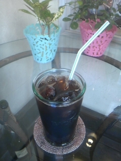 ホットと同じ要領でやや濃いめに煎れたコーヒーに氷を入れて一気に掻き混ぜて冷やします。この一気に、がポイント。