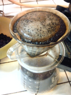 さてさて、コーヒーの粉にお湯をかけた時に写真みたく『ふっくら』膨らみますか?新鮮なコーヒーはお餅やパンが焼けた時みたく膨らむんですよ。